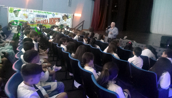El doctor Eduardo Gómez brindó detalles sobre la actividad educativa desarrollada en el Auditorio Municipal, una propuesta que forma parte del trabajo anual que el equipo de salud lleva adelante con distintos centros educativos, y que en esta ocasión tuvo como eje central la prevención del dengue.