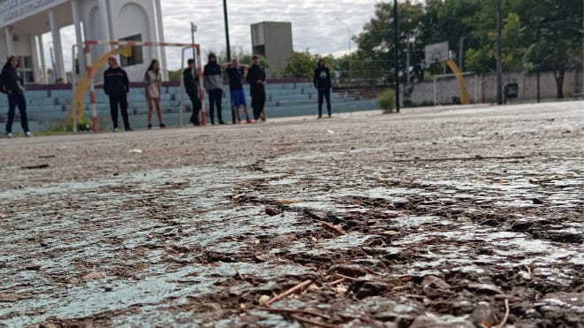 Los profesores denuncian que el mal estado de la infraestructura representa un riesgo directo para los jóvenes. “La cancha está rajada y en pésimas condiciones. Nosotros respondemos ante padres, autoridades y ante los propios chiquilines. No podemos mirar para otro lado”, agregó.