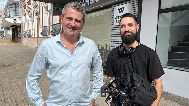 Alejandro Amaral periodista de Santo y Seña junto a su camarógrafo realizaron trabajos periodísticos en Artigas apuntando a las “Horas Extras” de la Intendencia de Artigas, programa que será emitido este domingo por Canal 4