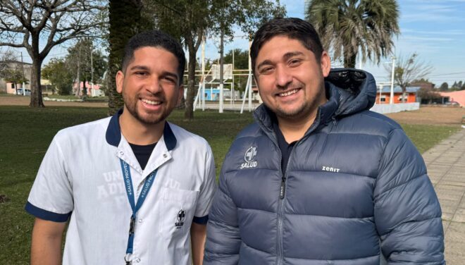 Rodríguez y Petravicius forman parte de un grupo de estudiantes universitarios provenientes de Entre Ríos, Argentina, más precisamente de la Universidad Adventista del Plata. Vienen respaldados por el Sanatorio Adventista del Plata, ampliamente conocido en Uruguay como “Puigari”, y participan del proyecto “Más Salud”, enmarcado dentro del Instituto Vida, que tiene sede en Montevideo.